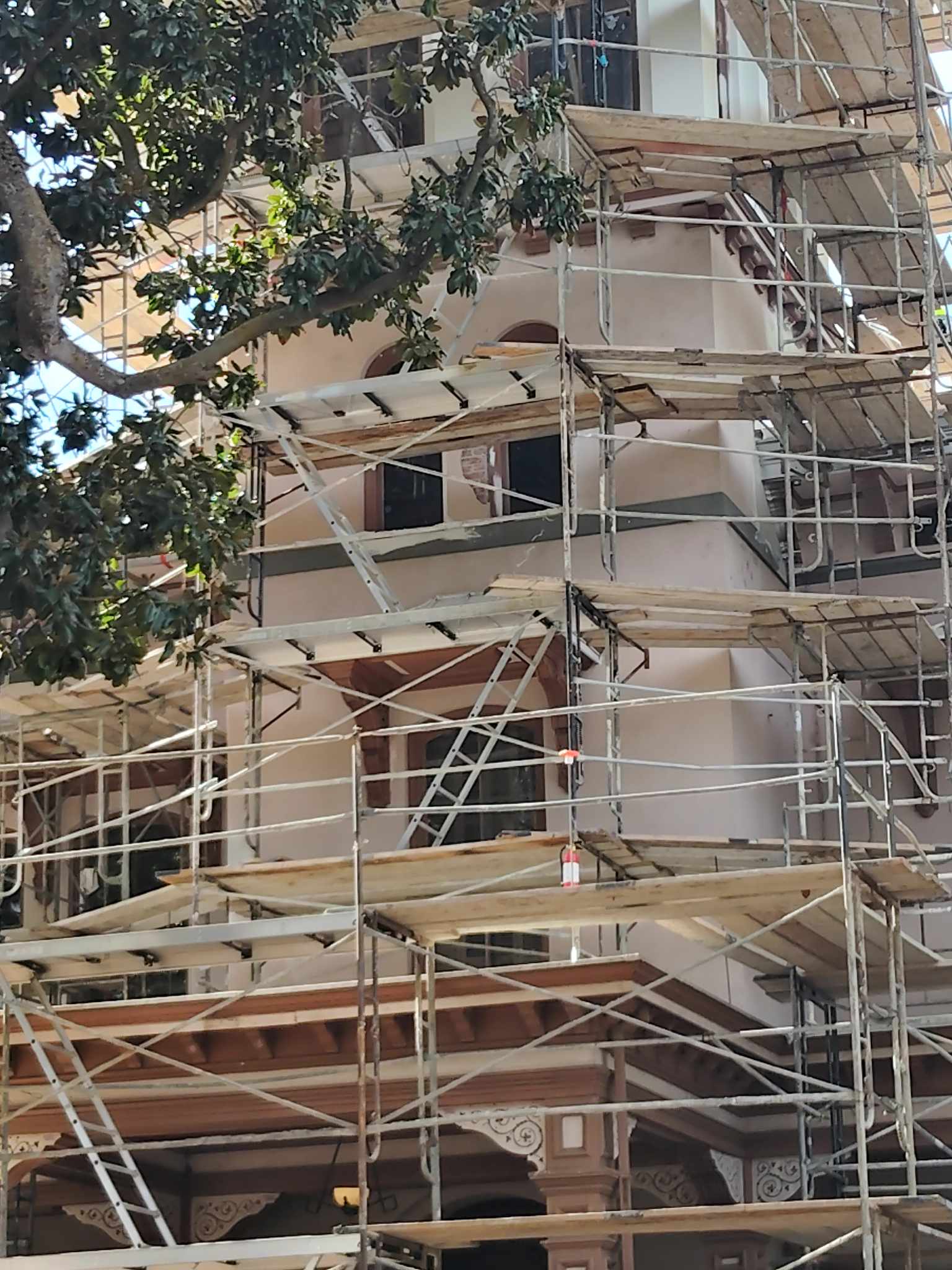 All of the ornamental urns and balustrades are to be evaluated and will be repaired or replaced. The roof is also slated for complete replacement.